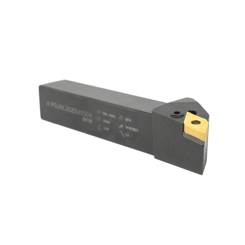 Резец токарный левый с креплением типа P (прижим рычагом за отверстие), угол плане 93 градуса, для ромбических пластин DN.. стандарта ISO, высота державки 25 мм, ширина державки 25 мм, длина державки 150 мм. При изготовлении токарных державок основная мехобработка ведется после термообработки, это обеспечивает следующие преимущества: размеры и параметры постоянные и точные, более точные посадочные гнезда под пластины – дольше срок службы комплектующих и СМП, повышенная жесткость державок.